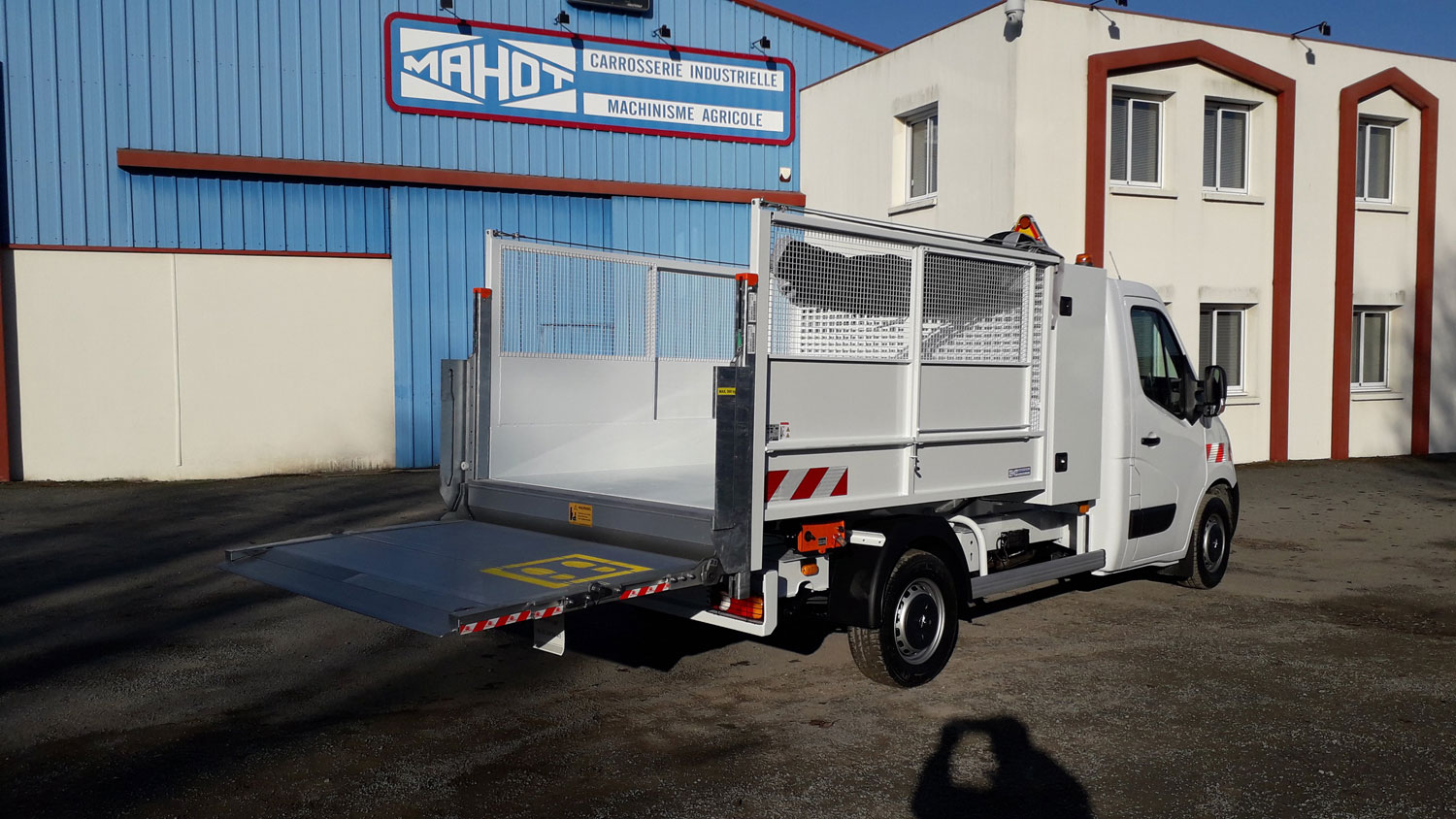 La sté MAHOT & Fils fournit et monte les hayons hydrauliques BAR CARGOLIFT et DHOLANDIA sur tous types de carrosseries : fourgons, plateaux, caisses, bennes….
